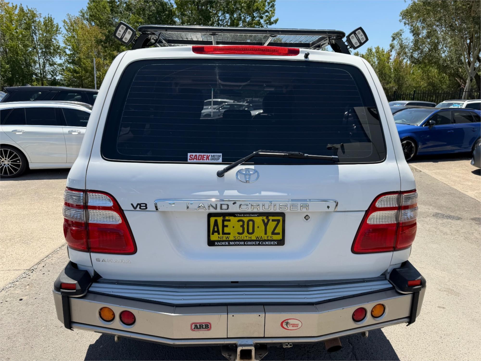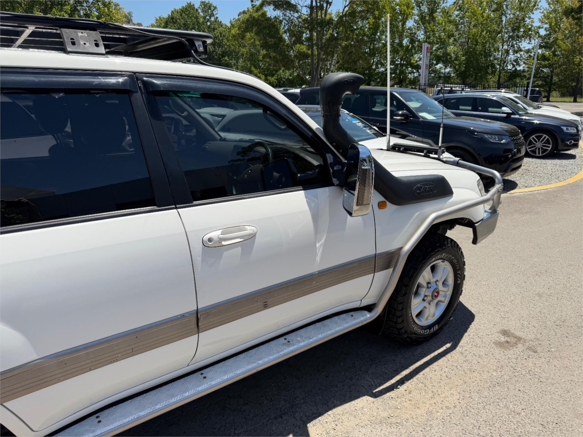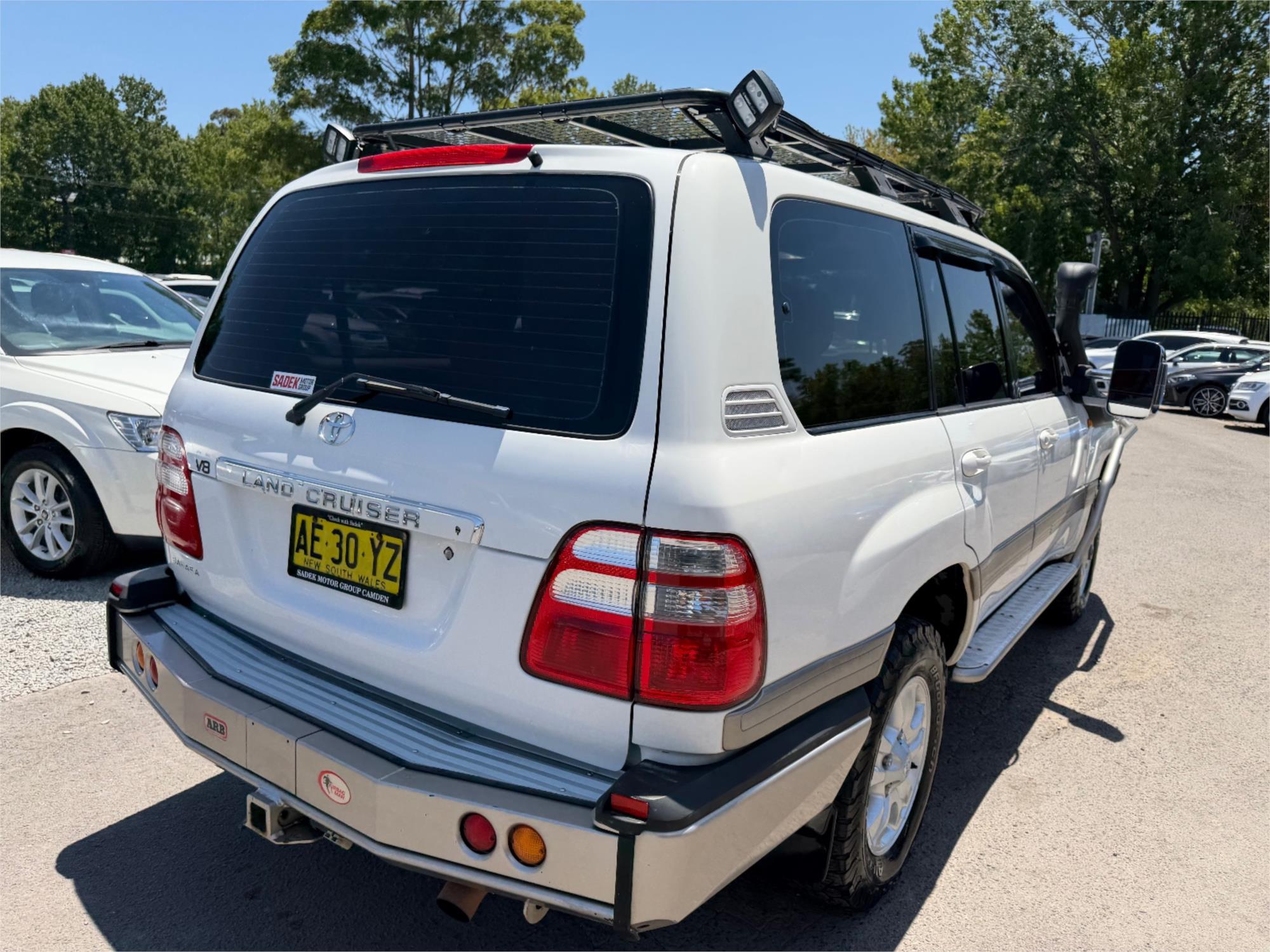 Equipped with SIDESTEP for easy access, ROOF RACKS for all your gear, and a BULL BAR with WINCH for off-road excursions, this Landcruiser is ready for anything. Plus, stay safe on the road with multiple AIR BAGS and ABS brakes.