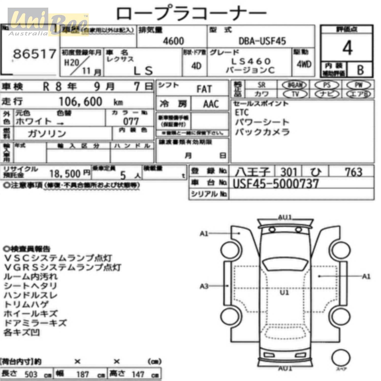 Title 2008 Lexus LS460 4WD Sedan USF45
