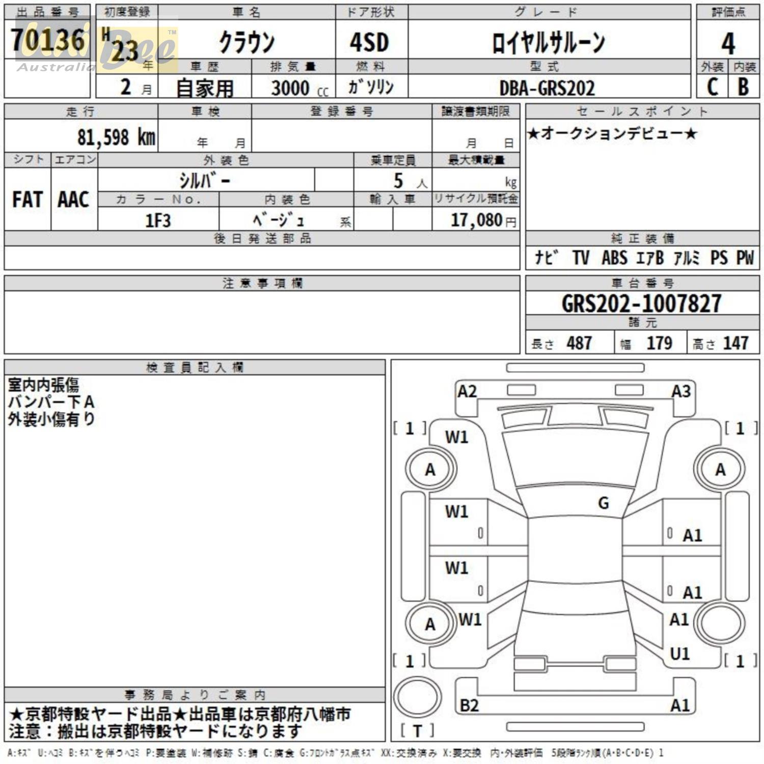 Title 2011 Toyota Crown Royal Saloon Sedan GRS202