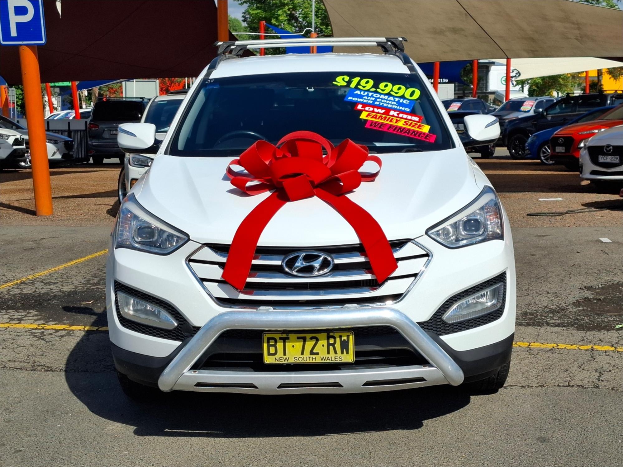 Ladies and gentlemen, gather 'round and prepare to be dazzled by the automotive wonder that is the 2013 Hyundai Santa Fe DM Active Wagon 7st 5dr Spts Auto 6sp 4x4 2.2DT [MY13]! This isn't just any vehicle; it's a chariot of dreams, a mobile fortress, and a seven-seater party on wheels all rolled into one sleek, white package. Imagine a polar bear in a tuxedo—elegant yet ready for adventure. That's the Santa Fe for you.