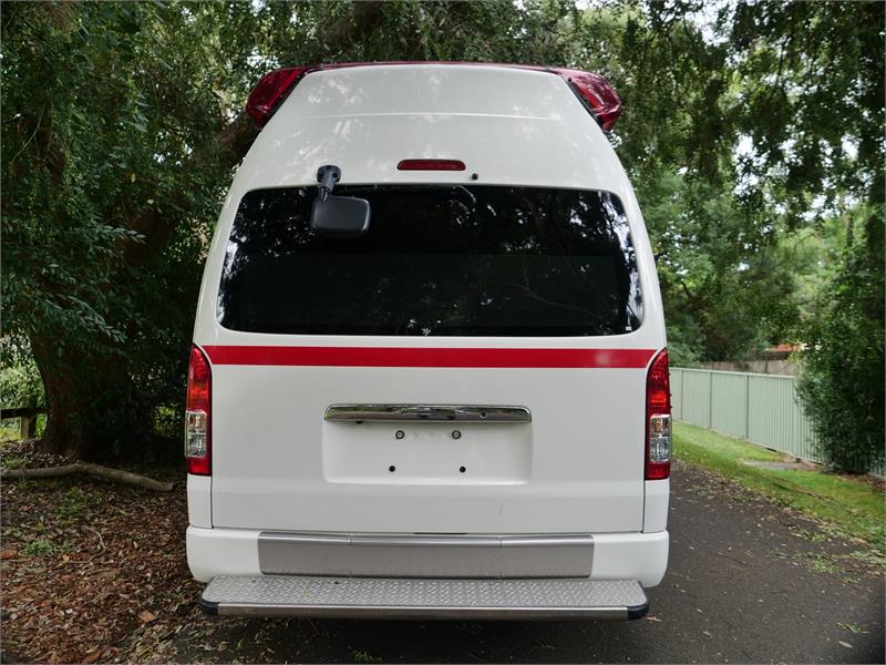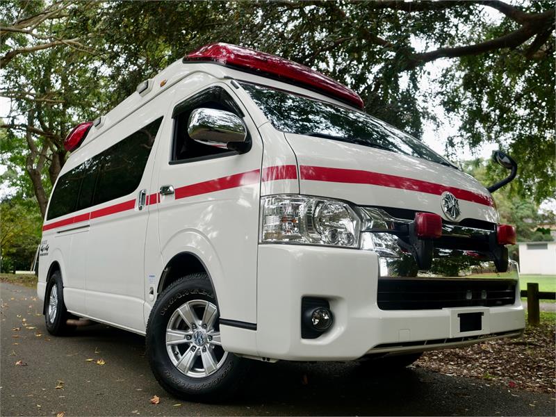 4WD Super Long Wheel Base Extra High Roof Ambulance - the ultimate Hiace for a camper conversion because the High Roof is 30 cms higher than a standard SLWB Hiace - tall people can dance around inside this one and short people can leap and do cartwheels -