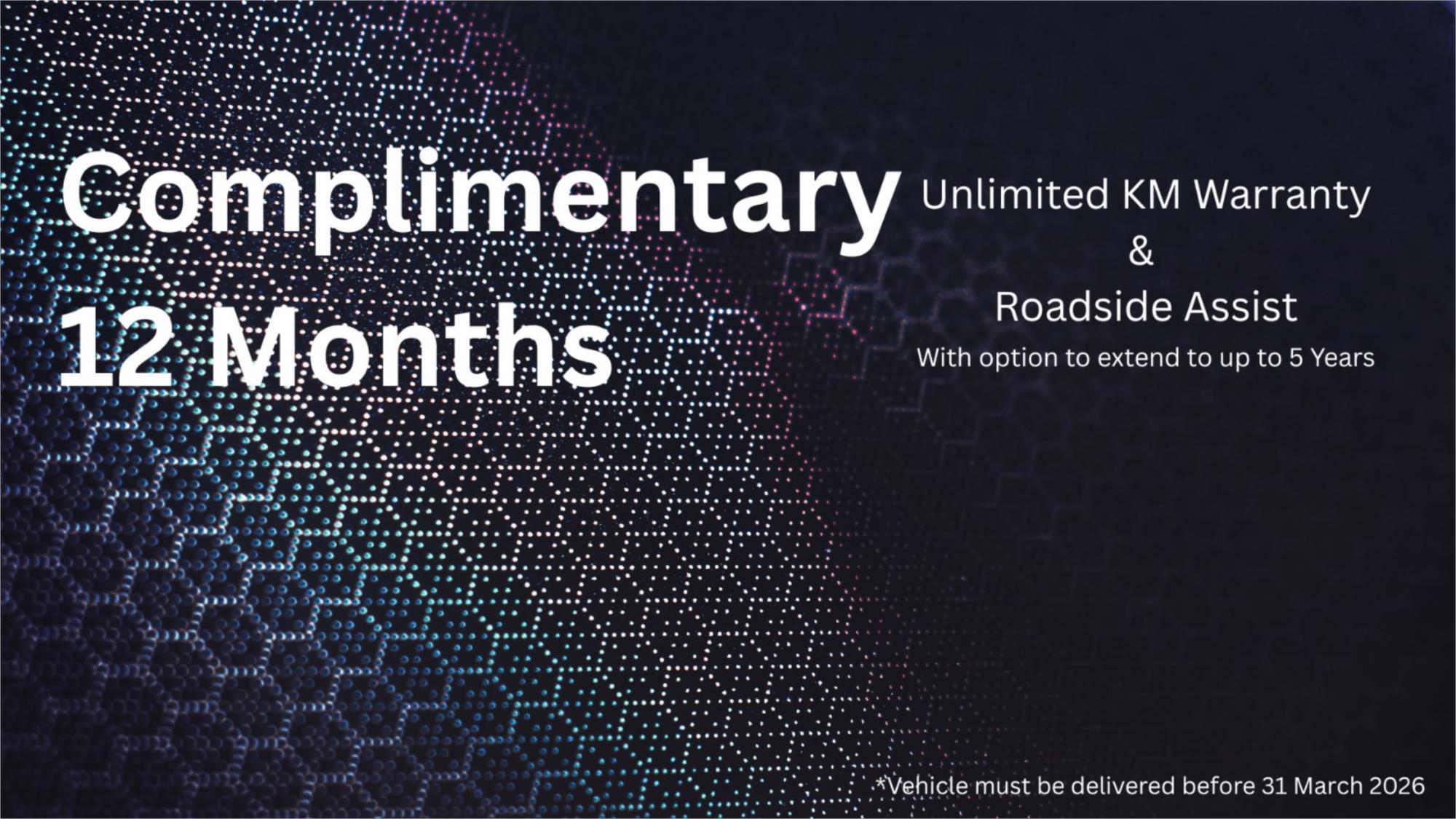 March Promotion: Complimentary 12 Month Unlimited Kilometre Warranty & 12 Months Roadside Assist