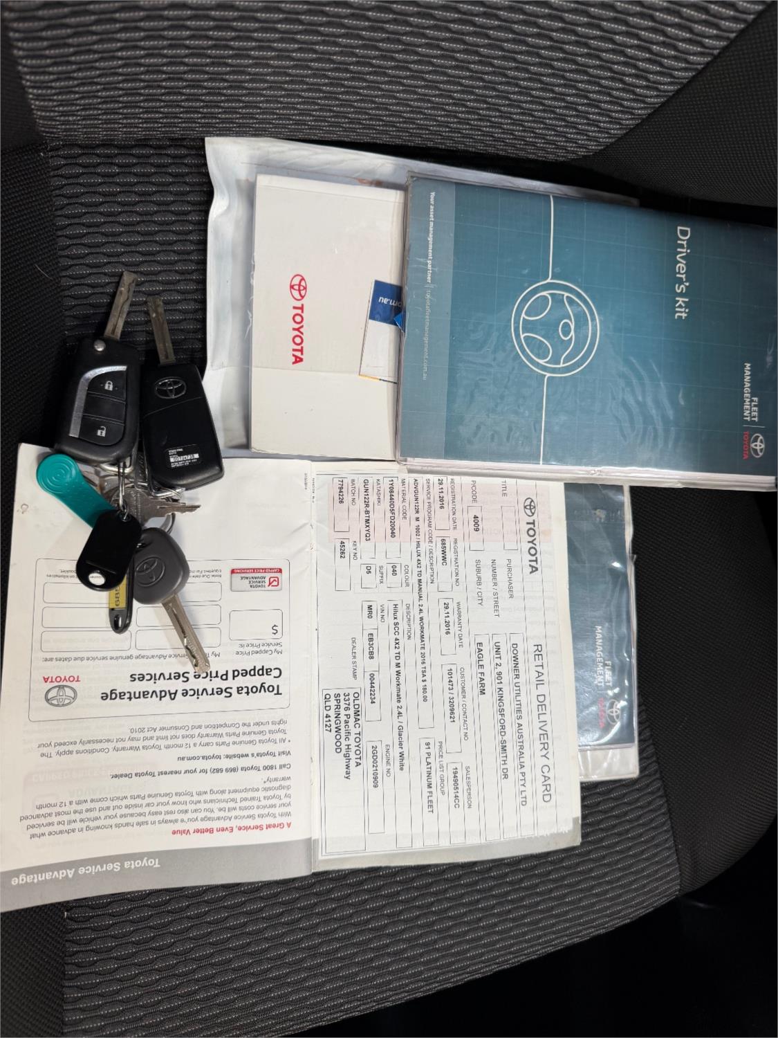 - Logbook and keys