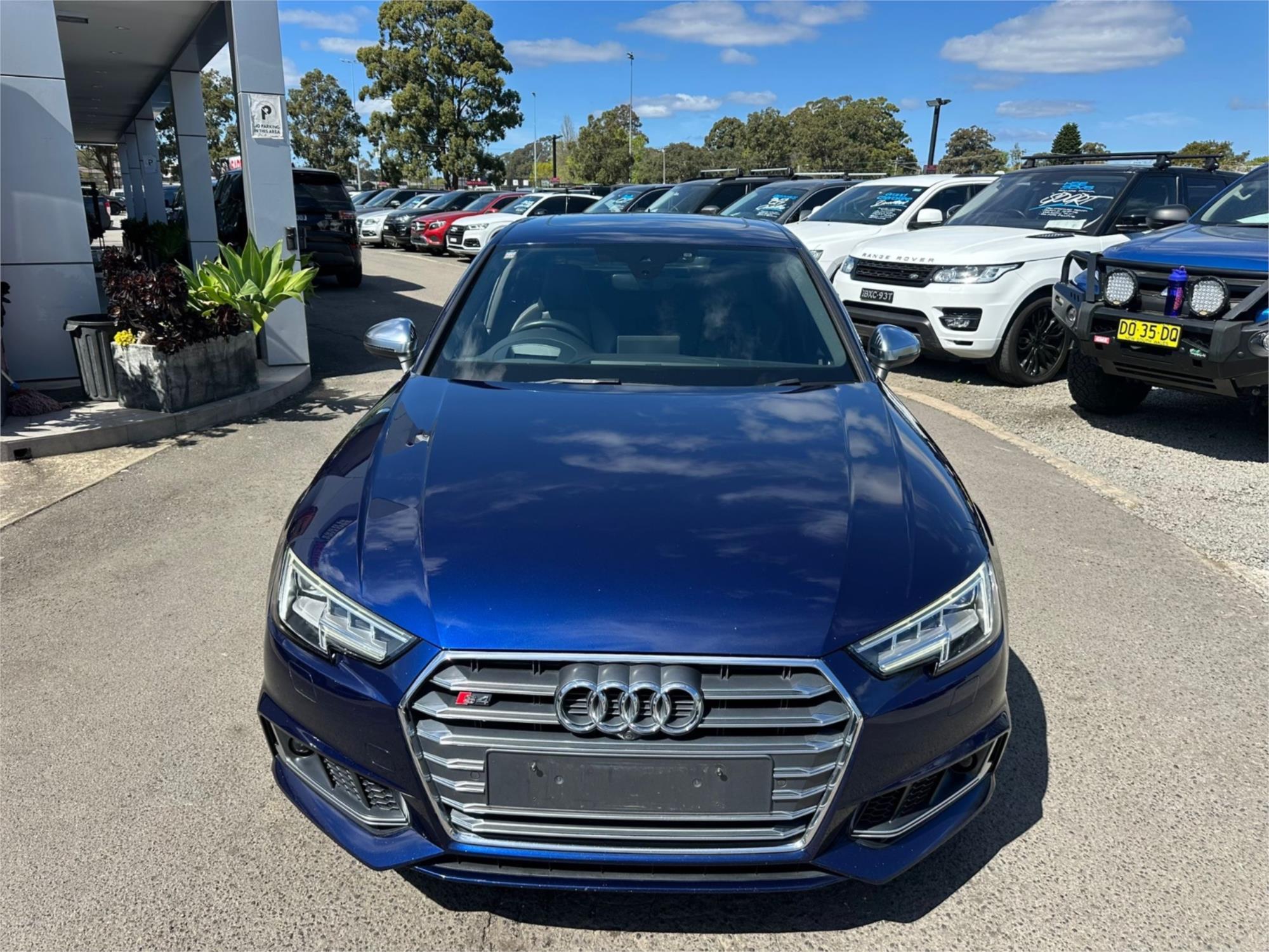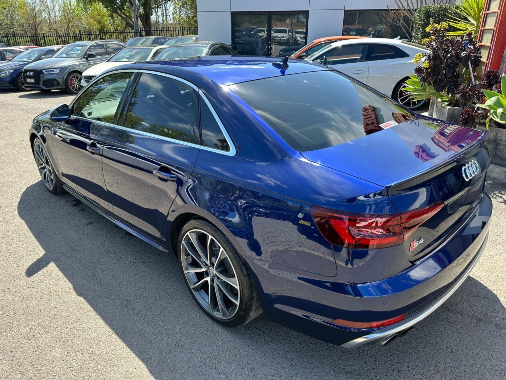 For Sale: 2018 Audi S4 B9 8W Sedan in striking Blue with luxurious Black leather interior. This sedan is a showstopper with its Diamond stitching, interior carbon inserts, and sleek design.