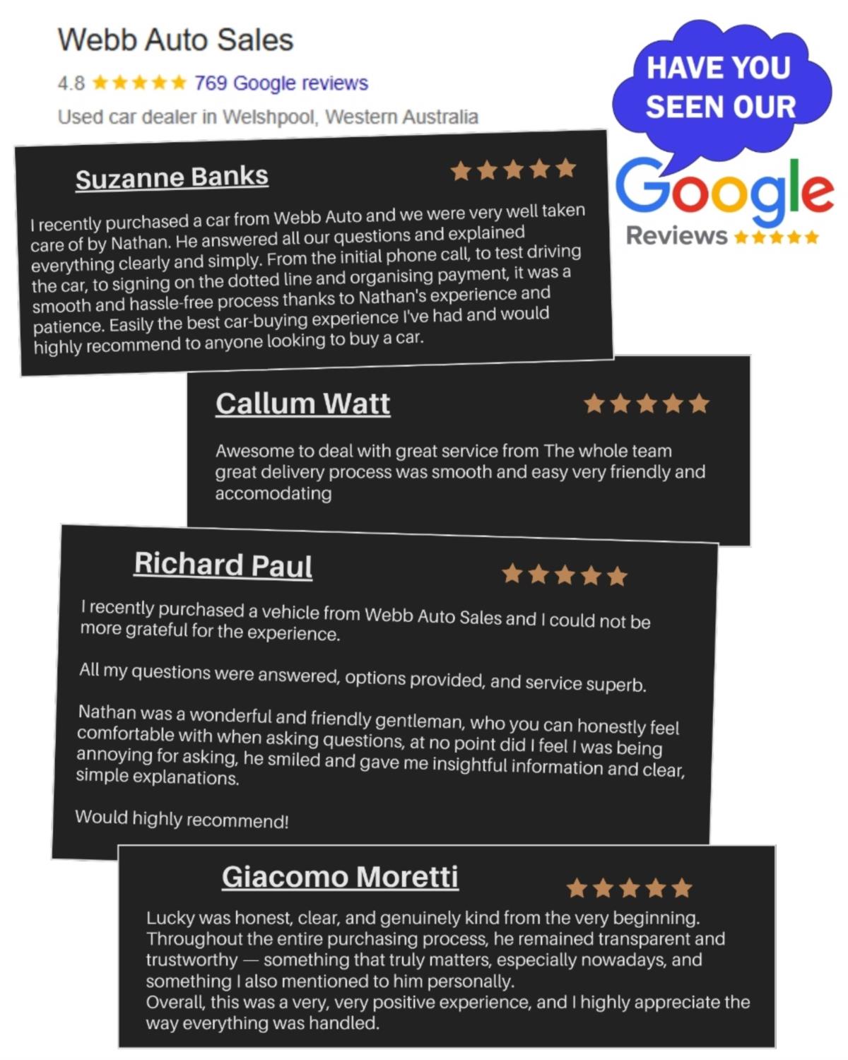 To see over 100 cars & our full details just visit www.webbautosales.com.au & give the Finance calculator a go to help work with your budget.