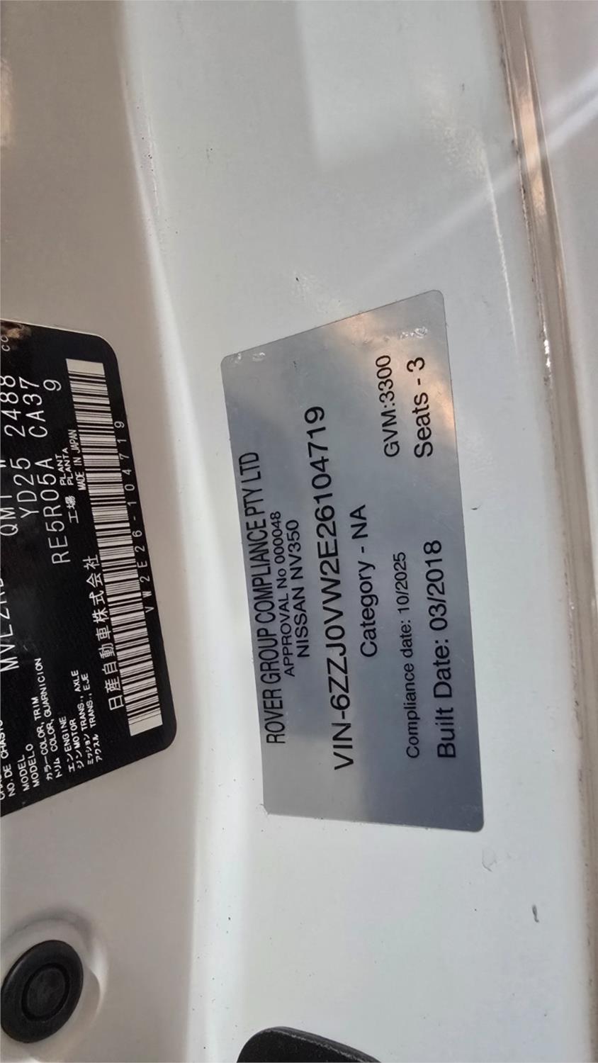 Title 2018 Nissan NV350 Van