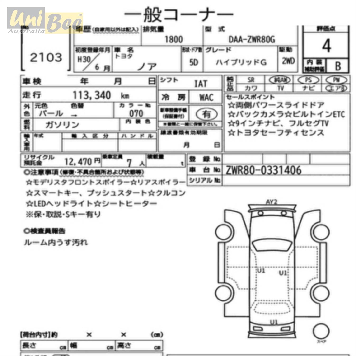 Title 2018 Toyota Noah Hybrid Wagon ZWR80