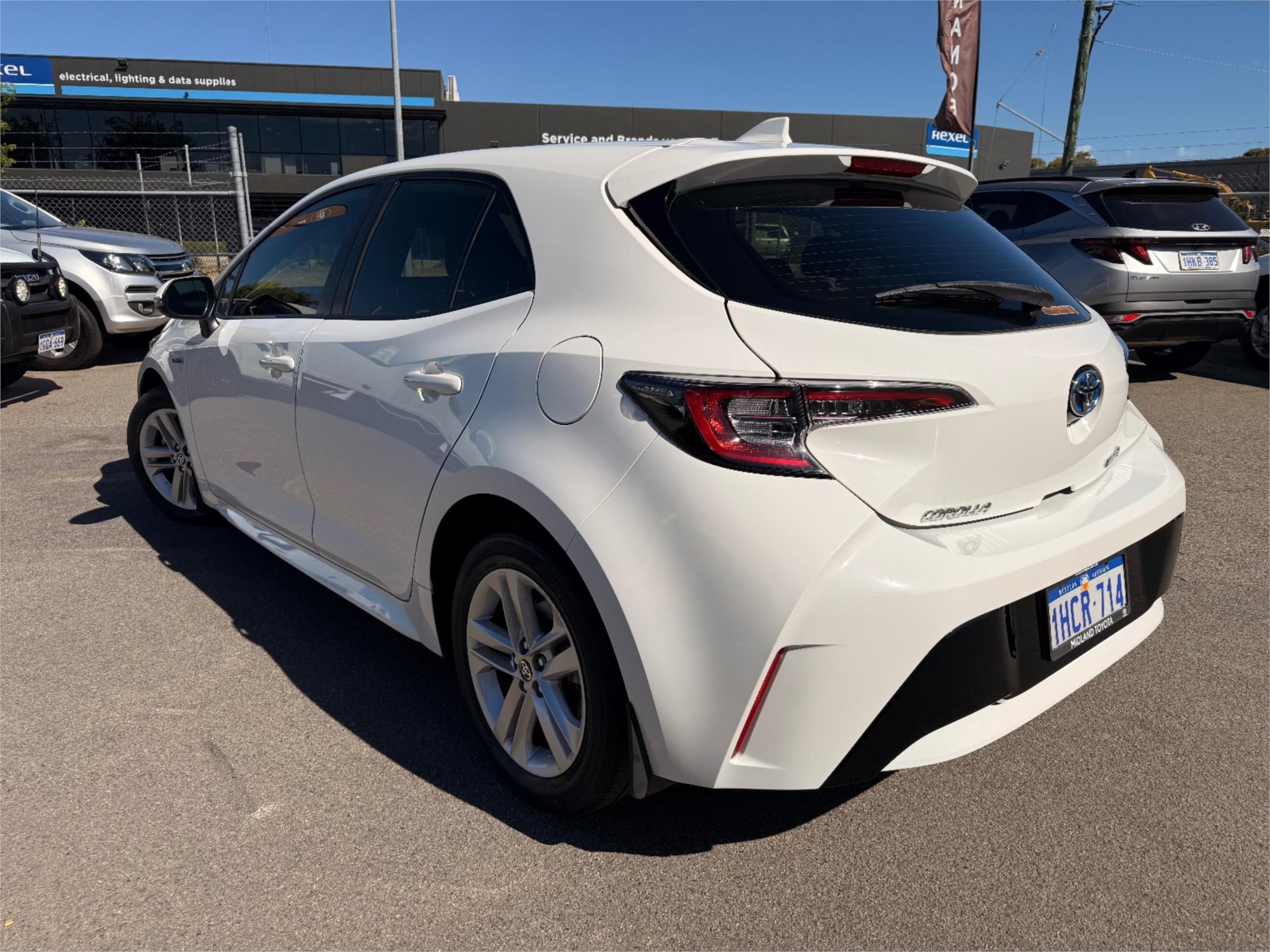 Searching for a perfect choice? then take a look at the 2020 Toyota Corolla Hybrid, this sleek white hatchback is the epitome of style and efficiency.