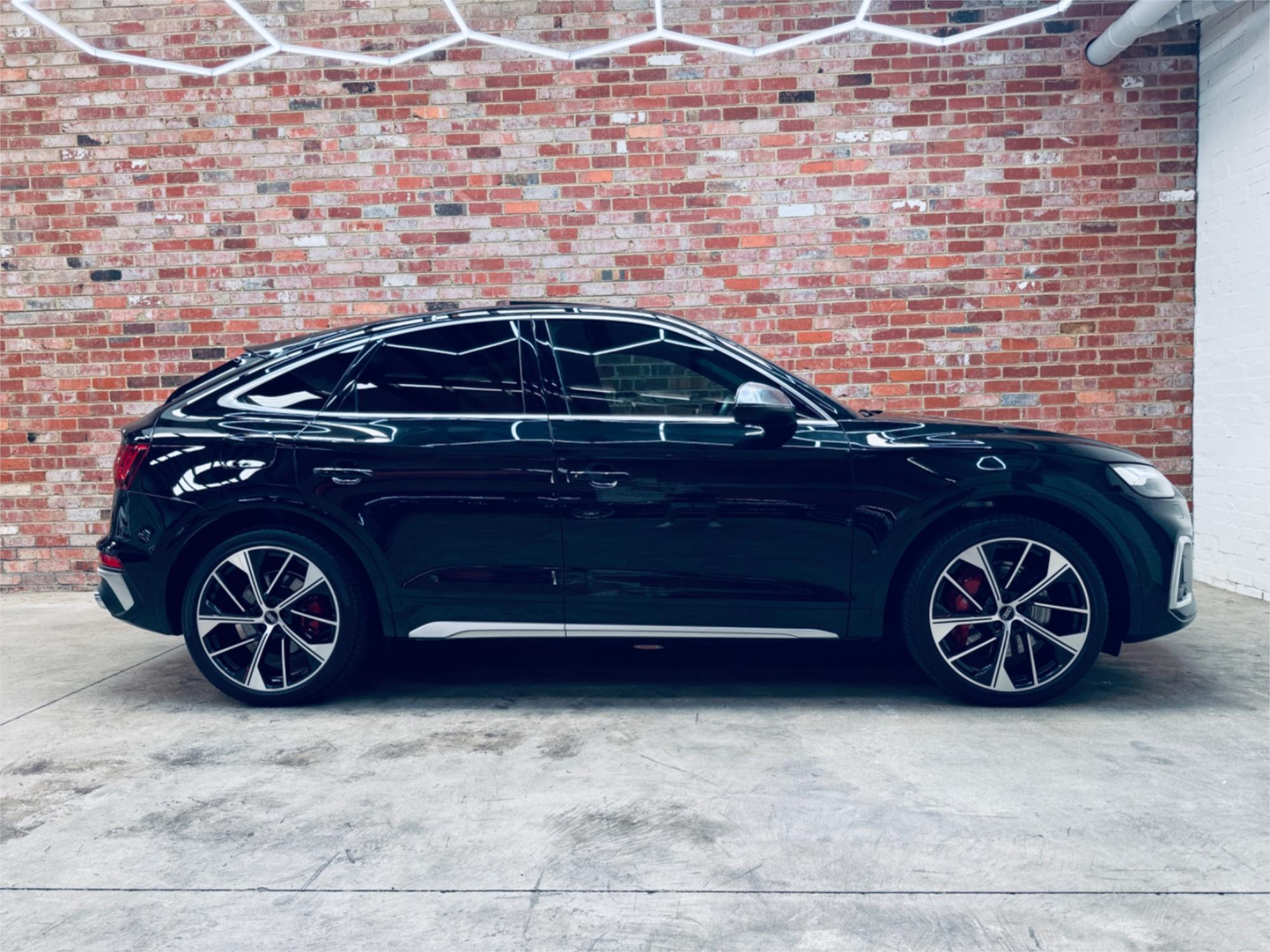 ....Sportback Coupe Audi SQ5 V6 TDi Turbo 251Kw/700 Nm Torque Including Performance Package. This Super Smart Looking Vehicle Is Here And Will Not Last. Finished In Popular Black Metallic Paint And Complimented With Black Leather Upholstery And White Cross Stitched Pattern.